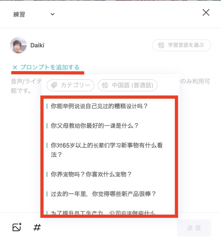 講師による音声コンテンツや、生徒による質問・自由形式での作文など、いろんなコンテンツが投稿されています。