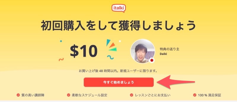 italkiではトライアルレッスン(1回30分)が最大3回(講師1人につき1回まで)受けられます。